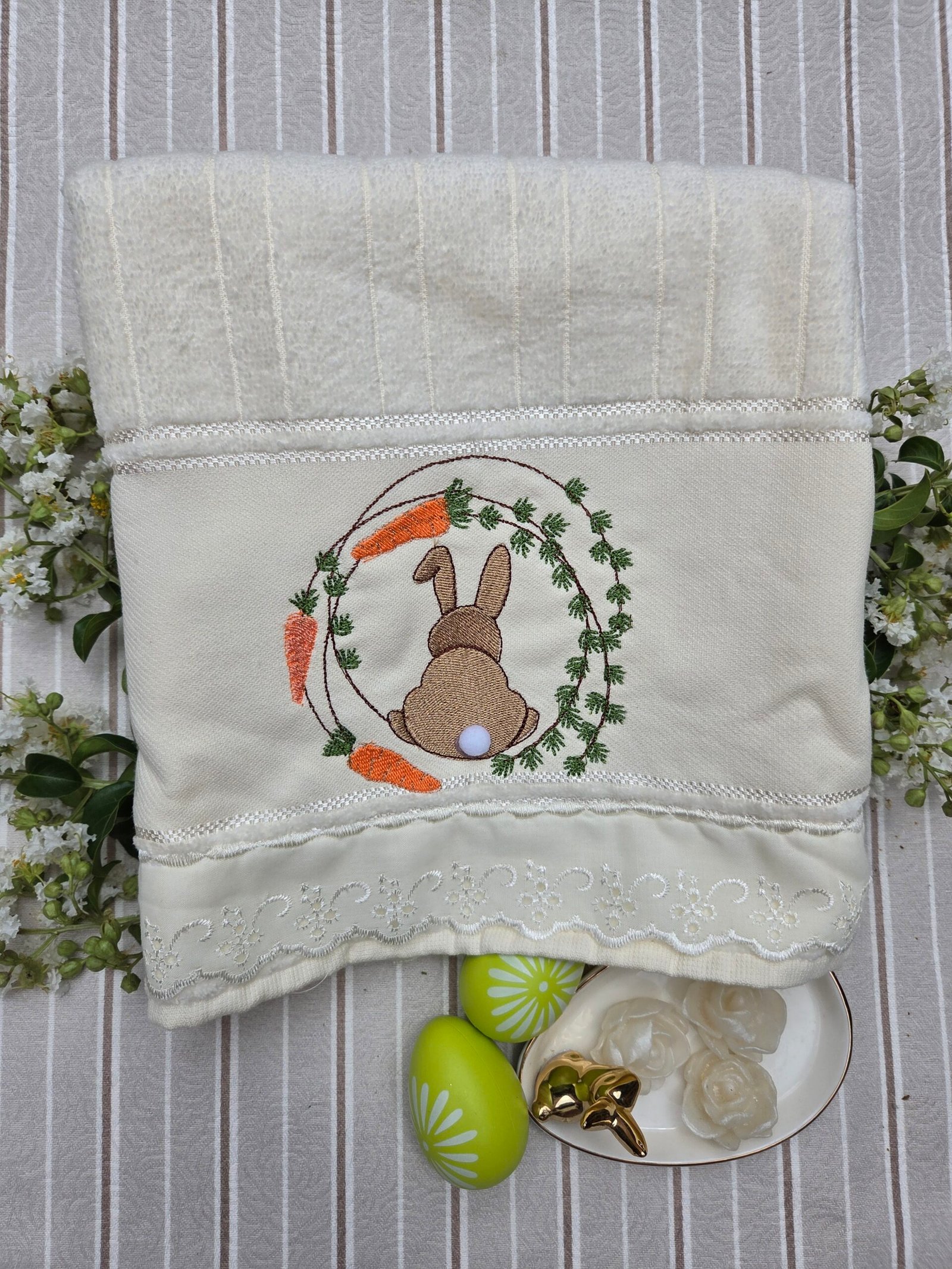 Perfeita para presentear ou para uso próprio, esta toalha de páscoa é um item que irá valorizar o seu lavabo.